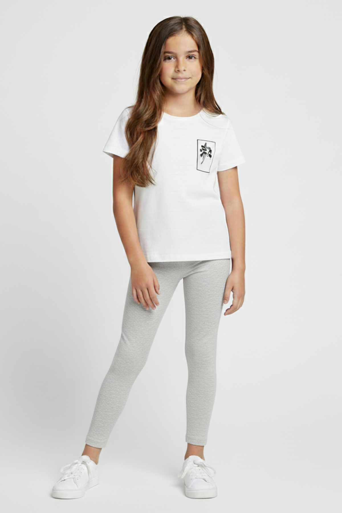 Kız Çocuk Gri Pamuklu Likralı Düz Uzun Tayt
